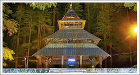 Manali has many attractions but the chief centre of interest, historically and archeologically, is undoubtedly the DHOONGRI TEMPLE dedicated to goddess Hidimba, the Bhim of Mahabharat fame. It has four-tiered Pagoda shaped roof and the doorway is carved with legendary figures and symbols. This temple located amidst wooden forest of deodar is about 2.5 Kms. from the tourist office. It is a pleasant experience to stroll in the temple complex which was built in 1533 A.D. A large festival is held here in May.