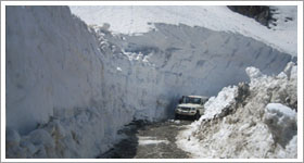 Rohtang Pass (3979 m) is 51Kms. from Manali on highway to Keylong/Leh. It offers a panorama and spectacular mountain view. The pass is open from June to October each year although trekkers can cross it earlier. It is a gateway to Lahaul Spiti, Pangi and Leh valley just as Zojila pass is a gatway to Ladakh. There are a beautiful sight of glaciers, peaks and Chandra river flows down in the Lahaul valley. Slightly to the left are the twin peaks of the Geypan. During summer(mid June to October) regular buses ply between Manali-Keylong/Darcha, Udaipur, Spiti and Leh. Rohtang Pass is best visitable between May/June to October/November. For latest information about opening of Rohtang Pass.