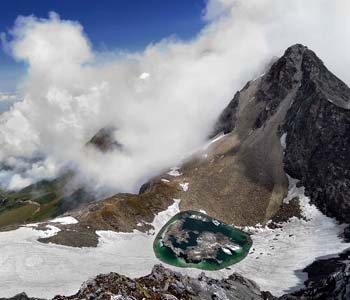 Tour Packages Roop Kund becomes famous when large number of Human bones was reported. After that explorers and scientists have tried to explain the mystery but it helped in deepening the mystery rather solving it. Two theories have emerged and one is that these bones are of Gen.Zorawar Singh of Kashmir and his men who were coming back after raiding China-Tibet in 17th Century. Second opinion, which is also believed by locals, is that large numbers of people visiting Homkund were trapped in avalanches and snowstorms and got killed. Not even a single man survived to tell the true story. Situated at a height of 5029 mts in the lap of Trishul massif, Roop Kund Lake is situated at eastern part of chamoli district of Garhwal in Uttaranchal, This area is usually called the 'Mystery Lake', since human skeletons and remains of horses from the age of paleolithic age were found here. The lake is surrounded by rock-strewn glaciers and snow clad peaks. The starting point of the trek is Debal.